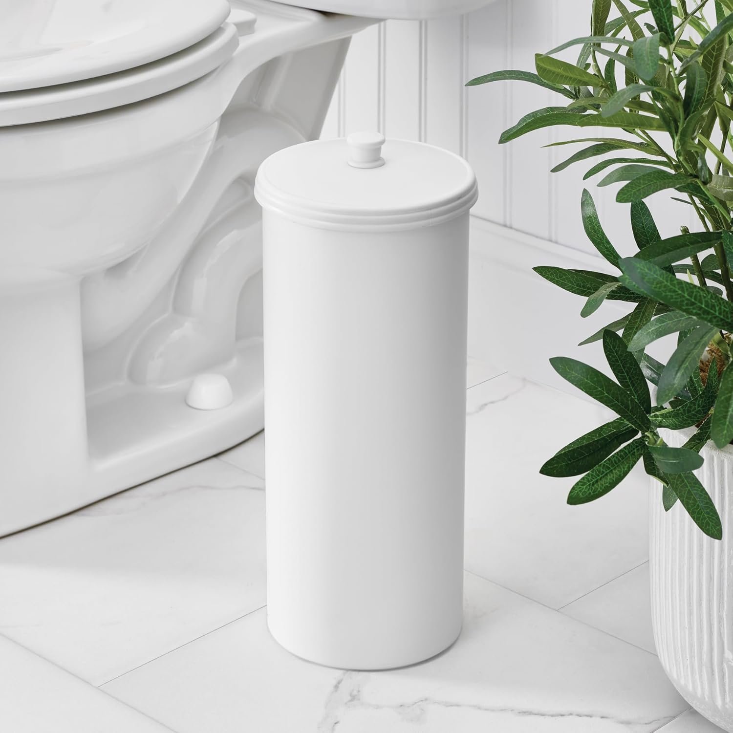 Within just a few days of use, it becomes clear why so many homeowners appreciate its unobtrusive footprint. The slim silhouette fits neatly next to most toilets, making it easy to access extra rolls whenever needed. Constructed from durable plastic, the canister also includes a nesting lid topped with a decorative knob, providing a finished look suitable for modern bathroom accessory setups.